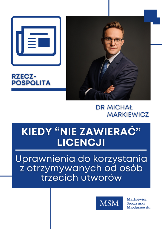 Kancelaria Markiewicz Sroczyński Mioduszewski to zespół prawników, którzy łączą wiedzę, doświadczenie i zrozumienie rynku w obszarach: własności intelektualnej, dóbr osobistych, ochrony konkurencji i konsumentów.